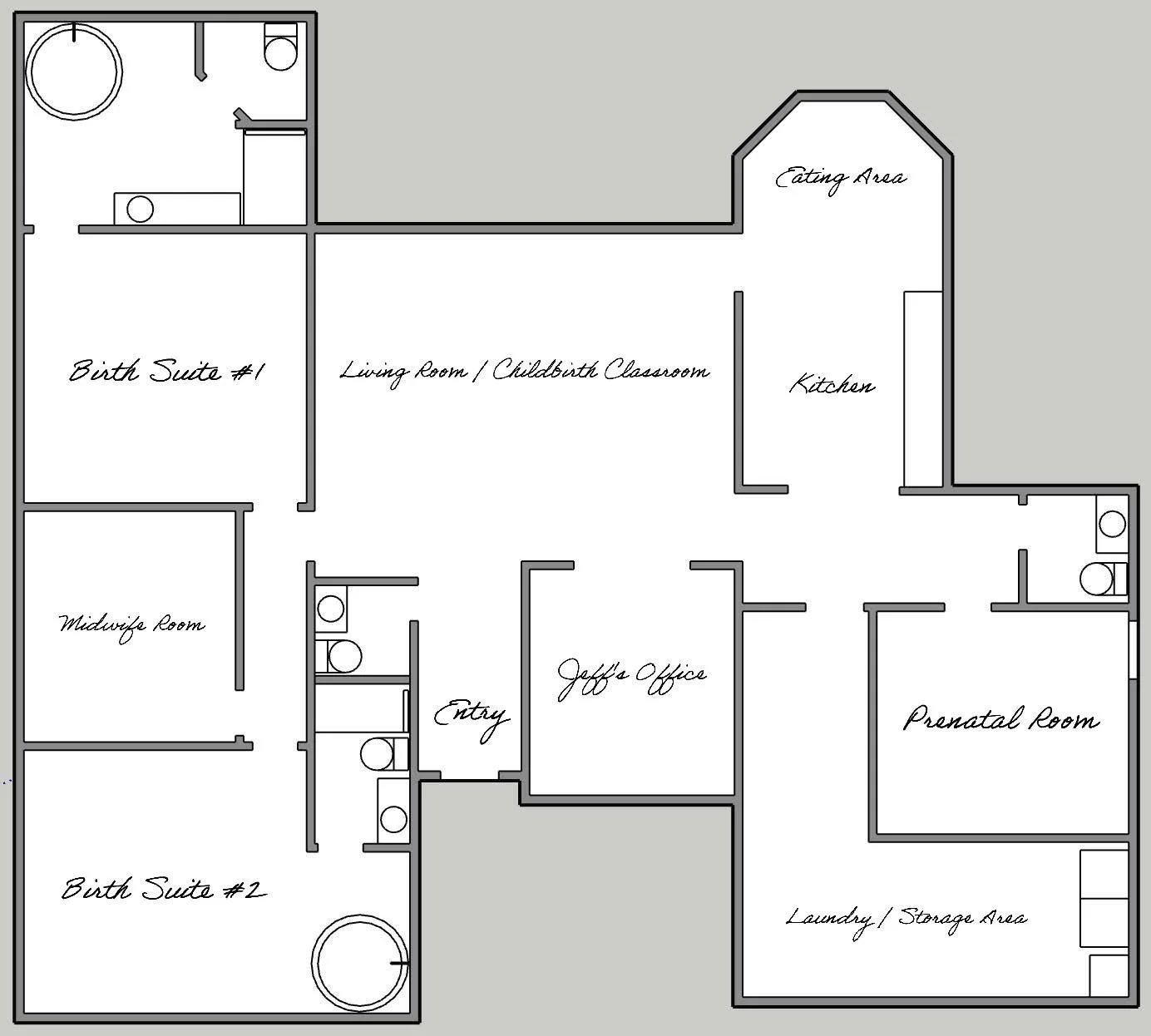 To give our moms and babies the cozy feel of home, we decided to purchase an existing home on two acres in a quiet residential neighborhood. The house had been vacant for the past couple of years following the passing of the elderly original owners who custom built it in 1986. Since it has not been updated in the past 40-years, we are currently doing an extensive renovation on it to serve our needs as a birth center. The Heritage Birth Center in Rhome will be 2,300 sqft and have two birth rooms, each with their own large birthing tub and full ensuite private bathroom. It will also have a prenatal room, a large reception/childbirth education room with a public half bathroom, a front office, a full kitchen with a table & chairs as well as barstools, and a large utility/storage area.